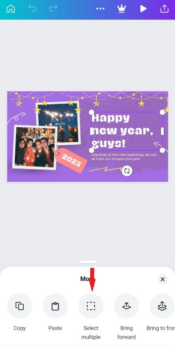 In some app versions, the process is slightly different. Simply tap on your first element again to pull up the selection menu, and then choose “Select Multiple.”
