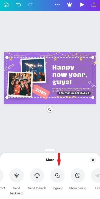 Locate the “Ungroup” option on the toolbar. Simply tap this button to proceed.