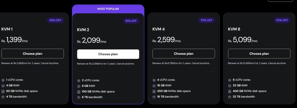 Hostinger offers a range of web hosting plans designed to cater to various needs and budgets. Their plans include shared hosting, cloud hosting, VPS hosting, and even WordPress hosting, ensuring that users can find an option that fits their requirements.