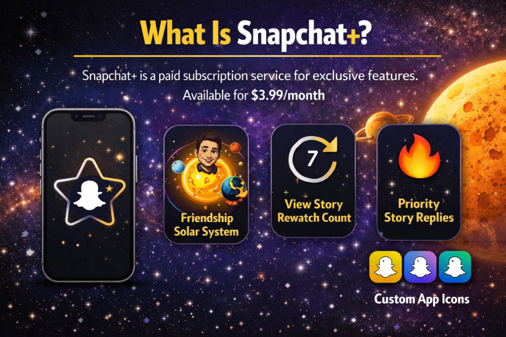 Snapchat+ is a subscription plan for Snapchat that offers users special features, customization options, and early access to tools not found in the free app. While it adds some exciting perks, it doesn’t change the main functions like sending Snaps, chatting, or posting Stories.